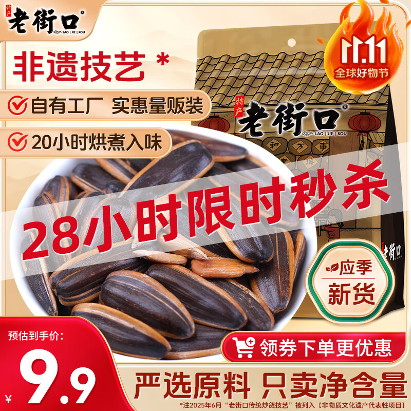 包邮 老街口焦糖瓜子500g/袋大颗粒葵花籽炒货零食香瓜子 每日坚果2025新货